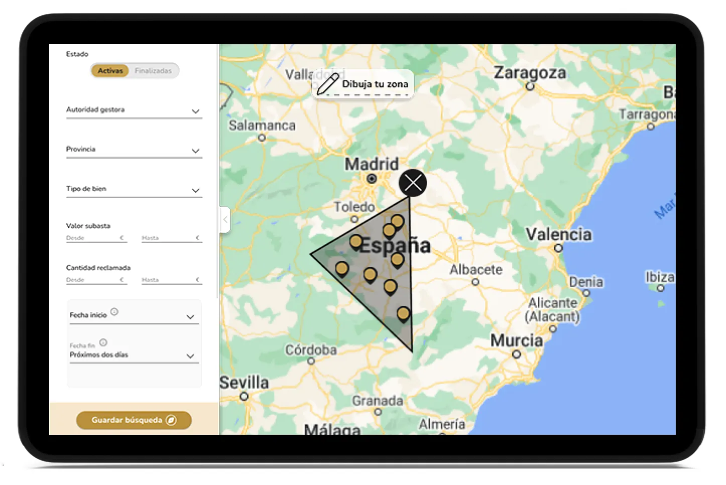 - Filtra por valor de subasta o cantidad reclamada, etc